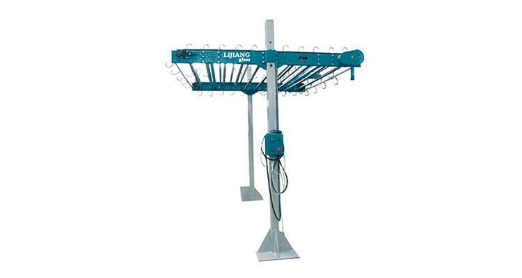 LJSKJ02 semi-automatic aluminum frame transfer machine is the equipment necessary for producing aluminum spacer type insulating glass. LJSKJ02 เครื่องถ่ายโอนเฟรมอลูมิเนียมกึ่งอัตโนมัติเป็นอุปกรณ์ที่จำเป็นสำหรับการผลิตกระจกฉนวนประเภทอลูมิเนียมตัวเว้นวรรค After an aluminum frame is coated with butyl, hang on the hook of this machine that may convey it to another side automatically. หลังจากเฟรมอลูมิเนียมเคลือบด้วยบิวทิลแขวนบนตะขอของเครื่องนี้ซึ่งอาจนำไปสู่อีกด้านหนึ่งโดยอัตโนมัติ