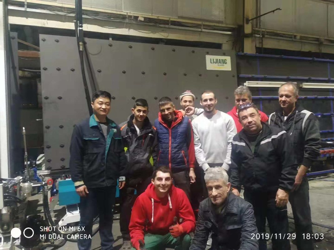 We have our own technician team ,IG line and automatic sealing robot technician team have 6 experts which all have more than 15 glass machine working experience. เรามีทีมช่างของเราเอง, สาย IG และทีมช่างเทคนิคการปิดผนึกอัตโนมัติหุ่นยนต์มี 6 ผู้เชี่ยวชาญซึ่งทั้งหมดมีมากกว่า 15 ประสบการณ์การทำงานเครื่องแก้ว Aluminum spacer bending and desiccant filling machine team we have 3 technician which have rich experience in double glass machines. อลูมิเนียมเป็นตัวเว้นวรรคดัดและสารดูดความชื้นเครื่องทีมเรามี 3 ช่างซึ่งมีประสบการณ์มากมายในเครื่องแก้วคู่ Butyl extruder machine and sealing pump and hot melt machine team have 4 experienced technician, all of them are worked in glass machine filed more than 12 years, เครื่องอัดรีดบิวทิลและปั๊มปิดผนึกและเครื่องร้อนละลายมี 4 ช่างเทคนิคที่มีประสบการณ์ทั้งหมดของพวกเขาจะทำงานในเครื่องแก้วยื่นมากกว่า 12 ปี