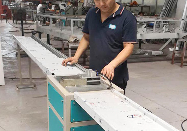 รูปชิ้นแรกของกระจกหยุดโดยอัตโนมัติในตอนท้ายของระยะเวลาการประกอบกรอบอลูมิเนียมเทียมใส่กรอบอลูมิเนียมชิ้นที่สองของแก้วในเวลาเดียวกันหยุดอัตโนมัติในตอนท้ายของระยะเวลาการทำความสะอาดปล่อยแก้วเทียมย้ายใกล้อลูมิเนียม การประกอบกรอบหลังจากชิ้นส่วนเหยียบสวิตช์เท้าหรือคนที่ดีกว่าสำหรับการกดกระจกเข้าใกล้ขนาดที่ระบุถ้าขนาดของการผลิตแรกตั้งระยะห่างระหว่าง X และ Y บนหน้าจอสัมผัสทดสอบด้วยตนเองว่า ระยะทางถูกต้องทำความสะอาดครั้งแรก: ชิ้นส่วนเล็ก ๆ โดยตรงลงในส่วนกดแบนในขณะที่ชิ้นส่วนกระจกขนาดใหญ่ในส่วนการประกอบกรอบอลูมิเนียมใส่กรอบอลูมิเนียมหลังจากใช้กระจก: คลิก "เลือกแก้ว" ในสถานะอัตโนมัติและคณะกรรมการจะปิด วางกระจกเปิดกระดานและส่งแก้วออกจากบอร์ด(ในการผลิตแบบอัตโนมัติชิ้นแรกของแก้วถูกดูดลงบนแผ่นที่เคลื่อนย้ายได้และไม่มีกระจกที่ตามมาดังนั้นต้องเอาชิ้นแรกของแก้วออกโดยใช้ฟังก์ชั่นนี้)