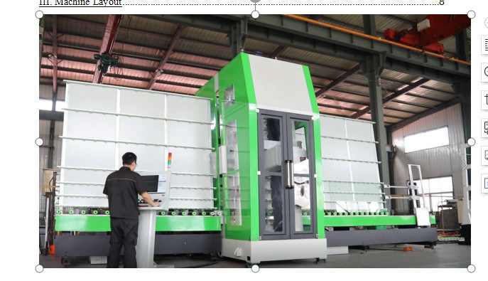 ศูนย์เจาะและกัดแนวตั้งมีขนาดเล็กและง่ายต่อการถอดประกอบส่วนประกอบหลักประกอบด้วยหุ่นยนตร์ ปลายอินพุตที่เป็นแก้ว พื้นที่การประมวลผล ปลายเอาต์พุตที่เป็นแก้ว และตัวดึงที่ด้านล่างกระจกวางอยู่บนตัวดึงปลายอินพุต และรองรับพนักพิงของปลายอินพุตเซอร์โวมอเตอร์เชื่อมต่อกับเฟืองขับของตัวลดกำลังเพื่อให้พลังงานแก่แคลมป์แคลมป์ยึดปลายด้านหนึ่งของแก้วและเคลื่อนย้ายแก้วไปยังพื้นที่การผลิตหลังจากที่แก้วไปถึงพื้นที่แปรรูปแล้ว การเจาะ การกัด และการแปรรูปอื่นๆ จะถูกดำเนินการในระหว่างการประมวลผล สปินเดิลด้านหน้าและด้านหลังสามารถดำเนินการเปลี่ยนเครื่องมือโดยอัตโนมัติตามเทคโนโลยีการประมวลผล และทำกระบวนการเจาะ กัด และเจียรรูด้านในให้เสร็จสิ้นโดยอัตโนมัติหลังจากผ่านกรรมวิธีแล้ว แคลมป์จะลำเลียงแก้วไปที่ปลายด้านออกของตัวลาก และสุดท้ายอุปกรณ์ส่งกำลังจะลำเลียงแก้วไปยังจุดสิ้นสุดของเอาต์พุต