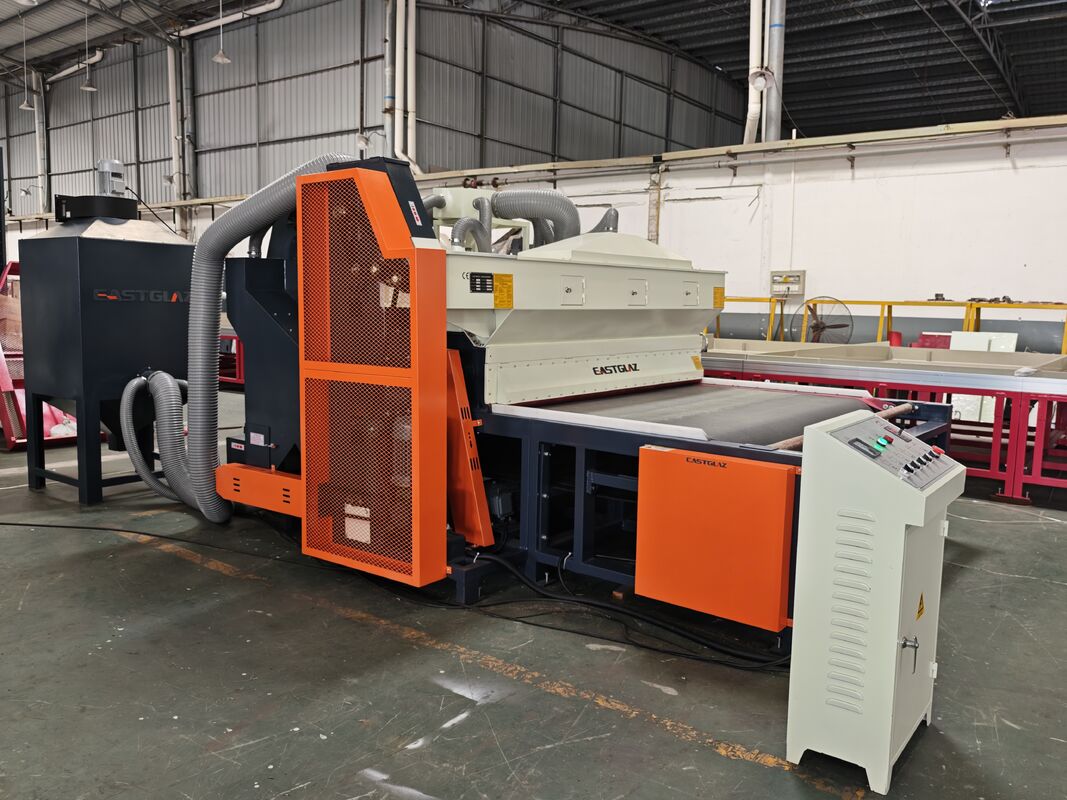 Full-automatic glass sandblasting machine contains of dust collecting--sand sweeping--transportation--grit feeding--sandblasting--sound attenuation--grit filtration--grit equalization--grit storage--shakeout. ทุกส่วนของการผลิตกระบวนการถูกเสร็จสิ้นโดยอัตโนมัติ. สภาพแวดล้อมการทํางานที่ดีขึ้นและลดความเข้มข้นแรงงาน. เนื่องจากการลดต้นทุนการผลิตมากเครื่องได้รับการยอมรับและเลือกโดยส่วนใหญ่ของลูกค้าเครื่องนี้เหมาะสําหรับการบดผิวของแก้ว, อาคริลิก, หิน, เซรามิค, โลหะและวัสดุอื่น ๆ
